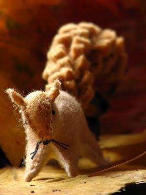 Hay doods. This is Shpiffy. He's a squirrel. I just finished attatching his ears. :) I have no life. I sketched out a pattern while watching the LotR movies yesterday, and then I grabbed some felt from upstairs between disk one and disk two of two towers. Again, I have no life. :)